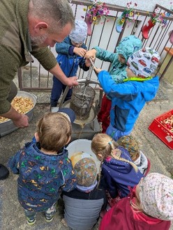 Wie kommt der Apfel ins Glas – Apfelsaftpressen mit Kita-Kindern