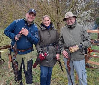 Manfred Hasenpusch schoss zwar schon früh an zwei Zielen vorbei, stabilisierte sich jedoch zunehmend und verfehlte auf dem gesamten restlichen Parcours nur noch mit wenigen Einzelpfeilen das Ziel. Dank zweier Center-Kill-Treffer und etlicher Schüsse mit höherer Wertung freute er sich am Ende, den anvisierten 10er-Schnitt pro Ziel knapp übertroffen zu haben. 243 Punkte bedeuteten für ihn in seinem letzten Turnier vor seinem 87. (!) Geburtstag Rang 13 unter 17 Akteuren bei den Jagdbogen Herren. Christian Bermes begann zunächst mit guten Wertungen und wenig Fehlschüssen und lag bis zur Hälfte des Parcours um einige Punkte über dem 10er-Schnitt. Zwar verfehlte er auch auf der zweiten Hälfte nur ein Tier mit beiden Pfeilen, doch einige Einzel-Fehlschüsse ließen ihn zurückfallen. Seine 224 Punkte reichten für ihn zum 15. Platz.