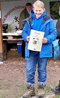 In der Klasse „Kinder bis 14 Jahre“ wiederholte Ludwig Meyer zu Bexten seine Platzierung vom letztjährigen Herbstturnier in Saatel und wurde mit 480 Punkten Dritter. Ben-Lewis Techow erreichte mit 394 Punkten den sechsten Platz. Beide waren in der Morgenrunde stark gestartet, konnten nachmittags das Niveau aber nicht ganz halten. Mit zwei annähernd gleichstarken Runden gelang es Josefine Meyer zu Bexten in der Klasse Jagdbogen Frauen ihre Trefferquote erheblich zu steigern, was ihr den 4. Platz einbrachte. Bei den Jagdbogen Herren hatte Manfred Hasenpusch nach der Vormittagsrunde noch mit zwei Punkten Vorsprung vor Christian Bermes vereinsintern vorn gelegen. Auch Bernd Reuter und Dieter Hoth folgten mit knappem Rückstand in die Mittagspause. Auf der Hunterrunde gelang es Bermes dann aber sein gutes Niveau zu halten und neben nur wenigen Fehlschüssen auch reichlich wertungsstarke Killtreffer zu landen. 590 Punkte bedeuteten am Ende für ihn einen guten fünften Platz. Manfred Hasenpusch war „auf´s Kill“ ähnlich erfolgreich, doch er beklagte zu viele Fehlschüsse - 522 Punkte reichten für Platz 9. Fehlschüsse konnte Bernd Reuter weitestgehend vermeiden, aber zu wenig hohe Wertungen und 516 Punkte brachten ihm Platz 10. Dieter Hoth fiel nach der guten Vormittagsrunde ab und landete mit 482 Punkten auf dem 13. Rang.