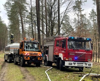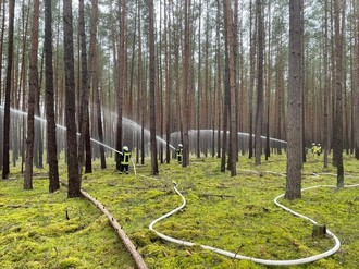 Bei dem Einsatzabschnitt der Brandbekämpfung im Waldgebiet konnte durch die schnelle Lokalisierung mittels Drohne gezielt zur Brandbekämpfung übergegangen werden. Der Entstehungsbrand, welcher sich mittlerweile zu einem Kleinbrand entwickelt hatte, musste unter Kontrolle gebracht werden, um eine weitere Ausdehnung zu verhindern. Um stets ein aktuelles Lagebild des Einsatzgeschehens zu erhalten, wurde zwischen dem Einsatzleiter der Führungsgruppe und den Einsatzabschnittsleitern sowie deren Gruppenführen die ständige Kommunikation geübt.
