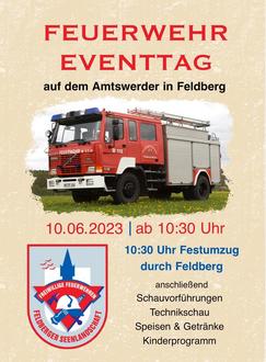 10:30 Uhr: Festumzug der Feuerwehren durch Feldberg beginnend am Weidendamm, anschließend Strelitzer Straße, Alter Landweg sowie Bahnhofstraße und abschließend wieder zum Amstwerder