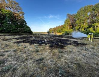 Ein Flächenbrand konnte rechtzeitig noch kurz vor der Waldkante gelöscht werden.