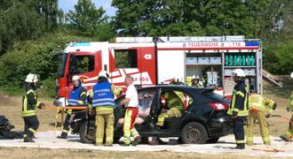 Den Abschluss des Programms bildete die Vorstellung „Technische Hilfeleistung bei einem Verkehrsunfall“. Die Kameradinnen und Kameraden veranschaulichten die Vorgehensweise eine eingeklemmte Person mithilfe eines hydraulischen Rettungssatzes aus einem verunfallten Auto zu befreien. Auch bei Einsätzen dieser Art ist eine enge Zusammenarbeit zwischen Rettungsdienst und der Freiwilligen Feuerwehr unverzichtbar.