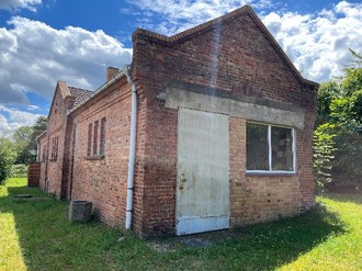 Das Grundstück hat eine Fläche von 950 qm ist mit einem Gebäude (Baujahr 1946) bebaut. Das Gebäude ist in zwei große Hallen unterteilt und hat an beiden Seiten einen Eingang. In dem Gebäude befindet sich außerdem Strom, ein kleiner Kamin und ein kleines Bad.