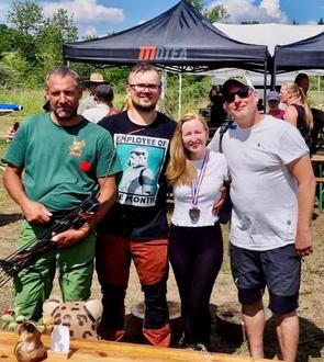 Am ersten Juni-Wochenende veranstalteten wir dann unser erstes Bogencamp in Grünow. Hier konnte man sich zwischen Planwagencamping und Lagerfeuerromantik auch interessantes Bogenwissen bei einem der Workshops aneignen. So erfuhr man zum Beispiel, wie man seine Pfeile selbst befiedert, wie eine Sehne gefertigt wird oder sich beim BogenYoga ausprobieren. Abgerundet wurde das Ganze mit einem kleinen Parcours.