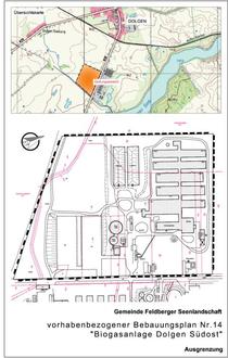 Mit dem Verfahren sollte die Erweiterung der vorhandenen Biogasanlage behandelt werden. Das Verfahren ruhte nach der Durchführung der frühzeitigen Beteiligung im Jahr 2015. Auf Antrag des Vorhabenträgers, zur Einleitung eines neuen Bebauungsplanverfahrens mit veränderten Geltungsbereich und neuen Entwicklungszielen, beschloss die Gemeindevertretung am 05.10.2023 ein neues Bebauungsplanverfahren zu beginnen. Mit dem vorhabenbezogenen Bebauungsplan Nr. 21 „Biogas und Tierproduktion Dolgen“ soll die Standortentwicklung der Biogasanlage Dolgen planungsrechtlich gesichert werden. Die Weiterführung des Verfahrens zum vorhabenbezogenen Bebauungsplan Nr. 14 ist somit hinfällig.