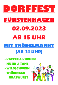 der Dorfverein Fürstenhagen lädt herzlich am 02.09.2023 ab 15:00 Uhr zu seinem diesjährigen Dorffest ein.