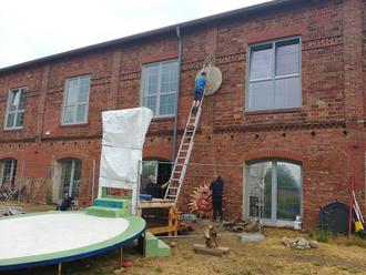 Meine Güte, da hab ich ja im letzten Kiek Rin richtig Mist gebaut, hab Euch erzählt, dass ich Pause mache und verwöhnt werde, und dabei waren Alejandro und Sylvia noch voll mit Vorstellungen beschäftigt. Entschuldigt bitte, keine Ahnung welcher Floh mir da durchs Gehirn gesprungen ist... Ich hoffe, ich habe nicht dafür gesorgt, dass Ihr das Stück verpasst habt. Das täte mir sehr leid, denn nun ist nämlich das Theater im Freien wirklich vorbei und ich hab mir heute schon mal meine verdiente Kuscheleinheit abgeholt. Das Wetter war in diesem Jahr nicht immer unser Freund. Glücklicherweise konnten wir „Brennende Geduld“ auch im Innenraum spielen. Bei drei Vorstellungen mussten wir von dieser Möglichkeit Gebrauch machen, haben in Rekordgeschwindigkeit umgebaut und drinnen gespielt. Insgesamt haben wir in diesem Jahr 12 Vorstellungen gehabt. Wir konnten trotz des mieseligen Wetters ca. 820 BesucherInnen bei uns begrüßen und haben von ihnen viele schöne Rückmeldungen bekommen – für unsere Inszenierung und für die Ausstellung von Volkmar Förster. Nun ist die Bühne draußen schon wieder abgebaut. Beim Aufbau und beim Abbau unseres Theatergartens und bei der Getränkeversorgung unserer ZuschauerInnen haben wir viele freundliche und sehr fähige Helferinnen und Helfer gehabt. Ich möchte mich jetzt noch mal ganz herzlich im Namen meines LuzinTheater-Teams bei allen UnterstützerInnen bedanken. Es ist sehr schön, mit Euch zusammenzuarbeiten.