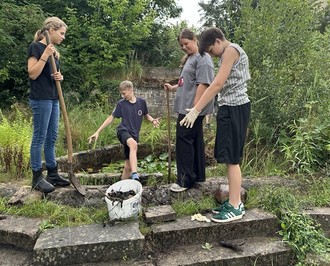 - Lichtenberg - rund um das wunderschöne Gemeindehaus von Lichtenberg gab es ebenfalls viel zu tun. Die Schülerinnen und Schüler befreiten Wege von wuchernden Pflanzen, fegten Flächen und kümmerten sich auch um die kleinen Ecken, die ein bisschen Aufmerksamkeit nötig hatten. Mit viel Elan und Blick fürs Detail wurde das Gelände so noch einladender gestaltet. Unser Dank gilt hier besonders Herrn Karberg, der die Gruppe mit Rat und Tat unterstützte.