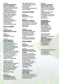 Bereits zum 10. Mal haben sich die unterschiedlichsten Akteure zusammengeschlossen und eine ganze Woche im Sinne von Pfarrer Sebastian Kneipp gestaltet. Alle 5 Kneippschen Säulen werden wir bei interessanten Vorträgen und Workshops näher kennenlernen. Weiterführende Informationen zu den Angeboten finden Sie auch auf unserer Internetseite www.feldberger-seenlandschaft.de.