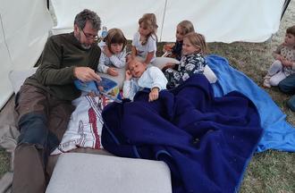 Mit zunehmender Dämmerung war es Zeit für einen kleinen Vortrag zu Fledermäusen, während im angrenzenden Waldgebiet das Fledermausfangnetz aufgebaut wurde. Die Kinder lauschten parallel der Fledermausgeschichte „Michel & Leni“. Und dann warteten alle gespannt auf die echten Fledermäuse. Kurz nach halb neun war es dann soweit und mehrere Fledermäuse gingen ins Netz. Eine Naturschutzgenehmigung für den Fang lag natürlich vor. Die Besucher konnten sich nun selbst ein Bild eines Fledermausnetzes im Einsatz machen und sehen, dass die Tiere beim Fang unversehrt bleiben. Ganz im Gegenteil zum Netz, welches einige Löcher davontrug, da die Fledermäuse sofort anfangen es durchzubeißen, sobald sie ins Netz gegangen sind.