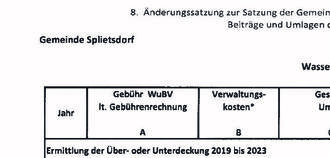 Die Satzung der Gemeinde Splietsdorf über die Erhebung von Gebühren zur Deckung der Beiträge und Umlagen des Wasser- und Bodenverbandes „Trebel“ vom 04.06.1998 wird wie folgt geändert: