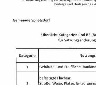 | Kategorie | Nutzungsarten | BE Berechnungs- einheit | Hebesatz ab 2024 |