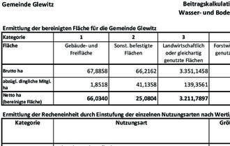 | Anlage 1 | Beitragskalkulation zu § 3 der vorstehenden Satzung |