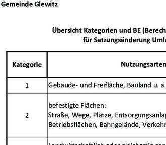 | Anlage 3 | Übersicht Kategorien und BE nach Nutzungsarten für Satzungsänderung Umlage Gebühr WuBV „Trebel“ |