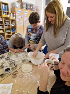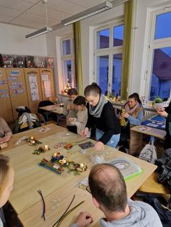 Bei Kinderpunsch, Lebkuchen und Weihnachtsmusik startete am 4. Dezember 2024 um 16 Uhr der Klassennachmittag der vierten Klasse. Viele Kinder, Eltern und Omas waren gekommen um gemeinsam aus Salzteig Weihnachtsanhänger und aus transparenten Kugeln zauberhaften Tannenbaumschmuck mit Glitzer, Figuren und kleinen Wünschen zu gestalten. Es entstanden sehr kreative und farbenfrohe Kugeln, welche bei der Seniorenweihnachtsfeier für eine kleine Spende angeboten wurden. Gerade die Mädchen zeigten dabei viel Ausdauer und die Eltern standen ihnen hilfreich zur Seite. Die Anhänger aus Salzteig hatten die Jungen für sich entdeckt. Sie nutzten dabei alle Ausstecher, egal ob Dino, Kleeblatt, Stern oder Tannenbaum. Gegen 18 Uhr war der Teig leer und das Glitzer überall auf dem Boden verteilt. Es war also ein rundum schöner Nachmittag.