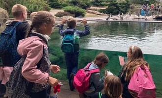 Bei bestem Wetter fuhren wir, die Grundschule Velgast, mit allen Klassen am 17. September 2025 zum Rostocker Zoo. Ein großer Reisebus holte uns morgens ab und fuhr uns durch halb Rostock zum Zoo. Im Zoo angekommen, wollten alle Kinder erst einmal frühstücken. Die erste und zweite Klasse machte es sich bei den Kamelen gemütlich. Die dritte und vierte Klasse ging zum Darwineum und frühstückte dort. Dabei entdeckten die Kinder hoch oben auf dem höchsten Baum einen Orang-Utan. Die Freude war groß. Anschließend gingen wir zu vielen weiteren großen und kleinen Tieren, wie Faultieren, Axolotl, Brüllaffen, Riesenameisen, Kängurus, Krokodilen, Piranhas, Löwen, Wildhunden, Erdmännchen … Unsere Mittagspause machten wir alle gemeinsam auf einem großen Spielplatz. Die Kinder aßen aus ihren Brotdosen oder holten sich etwas zu Essen. Danach wurde gespielt. Klasse drei und vier hatten noch ein Ziel vor Auge. Sie wollten unbedingt die Eisbären sehen. Also ging es nach dem Spielen schnurstracks zu den Eisbären und an den Pinguinen vorbei. Alle waren glücklich. Die drei Eisbären zeigten sich von ihrer besten Seite und wir konnten sie lange beobachten. Dann machten sich alle langsam wieder auf den Rückweg und wir trafen in der Nähe des Ausgangs wieder aufeinander. Beim Ausgang angekommen kauften sich einige Kinder ein Souvenir. Auf der Heimfahrt waren die einen Kinder immer noch aufgedreht und die anderen einfach nur müde. Es war ein rundum gelungener und schöner Tag.