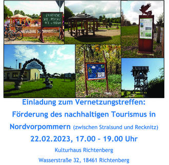 Ziel des Treffens ist die Vernetzung aller Tourismus-Akteure des Nordvorpommerschen Festlandes, (Inh. Von Ferienwohnung/Pension, Gastronomie, weitere touristische Angebote). Gemeinsam mit Ihnen möchten wir folgende Fragen erörtern: