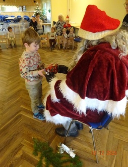 Und dann war es endlich so weit: Der Weihnachtsmann kam zu Besuch! Mutig trugen die Kinder ihm Gedichte und Lieder vor. Der Weihnachtsmann hörte aufmerksam zu und freute sich sehr über die tollen Beiträge.