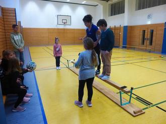 Heute, am 19. Januar 2023, stand in der Grundschule Velgast ein sportliches Event auf dem Plan. Zusammen mit der Kaufmännischen Krankenkasse (KKH) beschäftigten sich die Schüler der 1 - 4. Klasse mit der Feinmotorik im Sportunterricht. In der Sporthalle waren schon früh 5 Stationen aufgebaut worden, die die Schülerinnen und Schüler testen und an ihre Grenzen bringen sollten. Durchgeführt und beaufsichtigt wurde die Veranstaltung sowohl von Frau Pautz als auch von den Lehrern der Grundschule Velgast. In der ersten Stunde begann das Ereignis direkt mit der ersten Klasse. Gewechselt wurde nach jeder Stunde, dadurch hatte jede Klassenstufe gleich viel Zeit für die Absolvierung der Aufgaben zur Verfügung. In der Turnhalle angekommen, ging es dann direkt sportlich los. Die Schüler mussten, auf einer umgedrehten Bank stehend, den Ball 30 Sekunden lang prellen. Die Herausforderung dabei war das Gleichgewicht zu halten und nicht von der Bank zu fallen. Über Stationen wie Standhochsprung an einer Matte oder Sandsackweitwurf in verschieden große Felder freuten sich die Kinder am meisten. Alle erreichten Werte wurden tabellarisch erfasst und werden demnächst im Unterricht ausgewertet. Nach Ausführung aller Stationen bekam jeder Schüler eine Urkunde und eine Sporttasche. Es hat uns sehr gefreut, dass alle Kinder, egal welchen Alters, so zielstrebig, motiviert und konzentriert mitgemacht haben. Ein großes Dankeschön gilt auch der KKH, ohne welche das Ganze nicht möglich gewesen wäre. Wir hoffen, dass es den Kindern ebenso gefallen hat wie uns und dass wir Projekte wie diese in naher Zukunft wieder durchführen können.