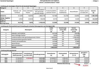 Der Hebesatz beträgt 21,02 €/BE und bleibt für die Folgejahre unverändert, bis er durch Satzung neu festgesetzt wird.