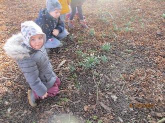 Es drückt Freude auf den Frühling aus. Auch wir singen neue, bekannte und alte Frühlingslieder. Auf unseren Spazier- und Beobachtungsgängen haben wir viele Frühblüher entdeckt und gelernt, wie diese heißen. Den Gesängen der Kraniche haben wir gelauscht und mit Begeisterung eine Putenfamilie beobachtet.