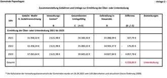 | Anlage 2 | Zusammenstellung Gebühren und Umlage zur Ermittlung Über- oder Unterdeckung von 2021 bis 2023 |