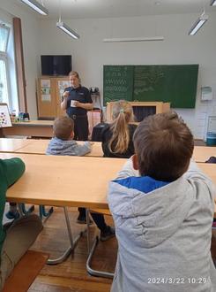 Am Freitag vor den Osterferien konnten wir den Termin für die Aufführung der Polizeipuppenbühne nachholen, da der erste Termin krankheitsbedingt ausfallen musste. Umso mehr freuten sich die Kinder der ersten und zweiten Klasse, als sie die Polizeibeamtin in Uniform in der Schule entdeckten. Neben vielen Fragen und kleinen Gesprächsrunden erfreuten sich unsere Schüler an der Aufführung von Lotta und ihrem Stern. Thematisiert wurden unter anderem der Umgang mit Fremden und das NEIN-sagen lernen. Viele der Kinder waren sehr gut vorbereitet und kannten bereits viele gute Verhaltensweisen zur Vermeidung von Gewalt und Entführungen. Die Polizeibeamtin Frau auf dem Thie war sichtlich beeindruckt und freute sich sehr darüber. Die Kinder halfen Lotta selbstbewusster zu werden und beteiligten sich an der Täterbeschreibung des Fremden, der Lotta angesprochen hatte.