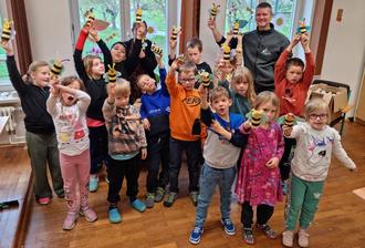 Zu einer Bastelstunde begrüßte Herr Schrimpf vom Eigenbetrieb Abfallwirtschaft des Landkreises Vorpommern-Rügen am 19. April 2024 die Klassen 1 und 2. Zunächst klärten wir, welchen Müll es gibt und welcher davon recycelt ist. Die meisten Kinder konnten bereits richtig zuordnen, was in die farbigen Mülltonnen gehört. Anschließend bastelten wir aus Klopapierrollen kleine Bienchen. Jeder konnte sich individuell die Flügelfarbe und die Gestaltung des Gesichtes überlegen. Die Vielfalt der Bienen konnte sich sehen lassen (siehe Foto)! Wir hatten viel Freude beim Basteln und Gestalten und sagen dafür Dankeschön.