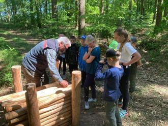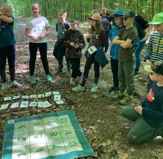 Mit insgesamt fünf Klassen startete am 15. Mai 2024 im Martensdorfer Wald die diesjährige Waldolympiade des Forstamtes Schuenhagen. Auch die vierte Klasse der Grundschule Velgast trat an und war sehr gespannt auf die bevorstehenden Aufgaben. Mit dem Zug fuhren wir nach Martensdorf und spazierten bis zum Treffpunkt in den Wald. Nach der Begrüßung durch das Forstamt Schuenhagen und die Einteilung in Tierklassen suchten wir, die „Wildschweine“, unsere erste Station auf. Diese hieß „Tiere im Wald“. Die Kinder ordneten hier verschiedene Felle, Losungen, Spuren und Karten den unterschiedlichen Tieren zu und sammelten dabei sehr viele Punkte. Bei der nächsten Station ging es schon sportlicher zur Sache. Ziel war es, 100 Kiefernzapfen in einen von drei Kreisen zu werfen. Insgesamt landeten 41 Zapfen in den Kreisen und damit holten wir die nächsten fünf Punkte. Die dritte Station gefiel allen Kindern. Dort grillten wir über einem Lagerfeuer Bockwürste am Spieß. Diese große Pause im Wald genossen wir sehr. Bei Station vier ging es darum, möglichst im 90 Grad Winkel ein Stück Holz zu sägen und das in Teamarbeit. Die Kinder wurden in die Arbeit eines Holzfällers eingewiesen. Die beiden Teams merkten schnell, wie anstrengend und schwer es ist, ein Stück Holz durchzusägen. Auch hier sammelten sie einige Punkte plus einen Zusatzpunkt. „Geräusche im Wald“ hieß die fünfte Station der Olympiade. Die Kinder ordneten Waldgeräusche richtig zu und durften auch selbst je ein Geräuschrätsel an die Lehrerin und den Mitarbeiter vom Forstamt stellen. Besonders schön war hier, dass unsere Kinder als einzige den Eichelhäher erkannten. Von diesem Punkt spazierten wir weiter durch den Wald zur sechsten Station „Bäume im Wald“. Hier war wieder Teamarbeit gefragt. Die Kinder ordneten ausführliche Beschreibungen, Holz, Rinde, Bilder von Blättern und Früchten den entsprechenden Bäumen zu. Am Ende sammelten wir auch hier viele Punkte. Die letzte Station „Holz umstapeln“ machte den Kindern sichtlich am meisten Spaß und forderte sowohl Ausdauer, als auch ein paar Muskeln ab. Sie bildeten eine Kette und gaben sich das Holz Schritt für Schritt weiter. Das letzte Kind in der Kette musste das Holz einwandfrei mit einer geraden Abschlusskante einsortieren. Auch diese Aufgaben meisterten die Kinder und holten viele Punkte. Beim Lagerfeuer fand im Anschluss die Siegerehrung statt. Am Ende holten wir mit 95 Punkten zwar „nur“ den undankbaren vierten Platz, jedoch war der Abstand zum Erstplatzierten (99 Punkte) sehr gering und wir alle waren auf unsere Leistung stolz. Da unser Zug später fuhr, blieben wir zuerst noch am Lagerfeuer, gingen später eine kleine Runde durch den Wald und hatten noch Zeit für verschiedene Spiele. Als wir dann in Velgast ankamen, waren alle glücklich, aber auch erschöpft. Das war ein schöner Tag.