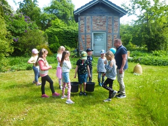 Nachdem wir im Oktober vergangenen Jahres unseren ersten erlebnisreichen Klassennachmittag im Pfarrgarten Starkow verbrachten, folgte nun im Mai der nächste an diesem schönen Ort. Damals sammelten wir Äpfel von den Streuobstwiesen und verarbeiteten die Früchte zu leckerem Apfelsaft. Eine Kostprobe davon durfte jedes Kind mit nach Hause nehmen.