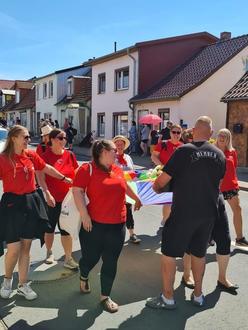 Am 8.7.2023 haben die Kollegen der AWO Kita „Sonnenschein“ das Richtenberger Sommerfest zum Thema „Italienische Nächte“ unterstützt. Mit Schwungtuch, guter Laune und Süßigkeiten nahmen die Mitarbeiterinnen der Kita am Umzug teil und verteilten die Süßigkeiten an die staunenden Kinder.