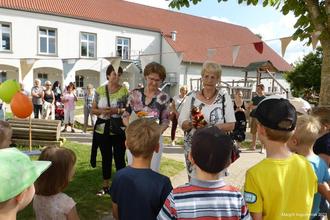 Zu diesem Jubiläum lud die DRK Kita „Kastanienhof“ am 13.07.2023 alle Interessierten der Öffentlichkeit zum „Tag der offenen Tür“ ein. Explizit für diesen besonderen Tag angereist sind ehemalige Krippenerzieherinnen, denen es augenscheinlich eine große Freude war, sich nach über 4 Jahrzehnten wiederzusehen. Frau Peschka, Frau Beetz, Frau Wieck, Frau Hübscher, Frau Wasner und Frau Howe zählen zu den ersten Erzieherinnen der Krippe in Velgast. Frau Peschka, heute in Dessau lebend, gastierte unter allen Interessierten und berichtete sehr detailliert und gefühlvoll von den Anfängen der pädagogischen Arbeit. So entstand 1973 im damaligen Gebäude der Psychatrie die erste Wochenkrippe unter Leitung Frau Peschkas. Der wachsende Bedarf an Plätzen erforderte veränderte räumliche Bedingungen und so zog die Wochenkrippe später in die damalige alte Schule, auf dessen Grundstück wir heute den Norma kennen. Die geladenen Krippenerzieherinnen schwelgten an diesem Tag in besonderen Erinnerungen und erfreuten sich des Wiedersehens. Sie sind dem heutigen Team der DRK Kita „Kastanienhof“ äußerst dankbar, dass sie sich auf diese feierliche Weise wiedersehen konnten.
