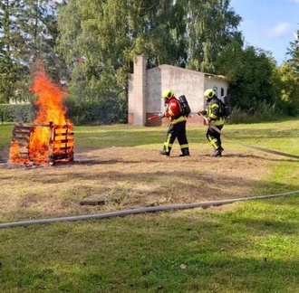 Die Freiwillige Feuerwehr Gremersdorf / Vorland machte es möglich, mit dem Feuerwehrauto durchs Dorf zu fahren und zeigte uns, wie sie ein „brennendes Haus“ löschen.
