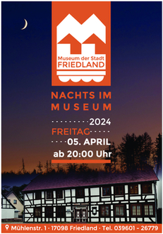 Frei nach der Komödie „Nachts im Museum“ des Regisseurs Shawn Levy wird das Museum der Stadt Friedland am 5. April 2024 geöffnet.