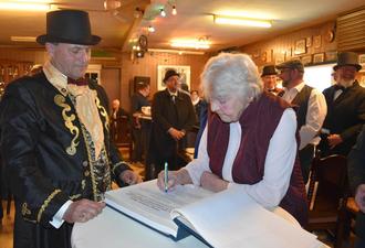 Nach Parkplatzeinweisung durch die historisch gekleidete Feuerwehr und einer herzlichen Begrüßung im Sportpavillon, reiste das Publikum aus Ehrengästen und Einwohnern gedanklich ans Ende des 19. Jahrhunderts.