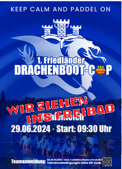 Am Ende ist nicht alles, aber doch einiges anders: Der TSV Friedland 1814 e.V. veranstaltet weiterhin mit Unterstützung der Stadt Friedland den 1. Drachenboot-Cup in Friedland. Das Rennen wird in abgewandelter Form nun im Freibad Friedland stattfinden.