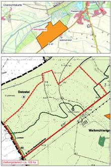 Er beläuft sich auf eine Größe von etwa 108 ha und erstreckt sich auf die Flurstücke 4 (tlw.) und 5 der Flur 51, die Flurstücke 1, 2, 3, 4/2, 5, 6, 7, 8 und 9 der Flur 52, die Flurstücke 3/1 (tlw.), 5/2 (tlw.) und 9 der Flur 53 sowie das Flurstück 16/1 der Flur 54 in der Gemarkung Friedland. Der Änderungsbereich umfasst Flächen für die Landwirtschaft.