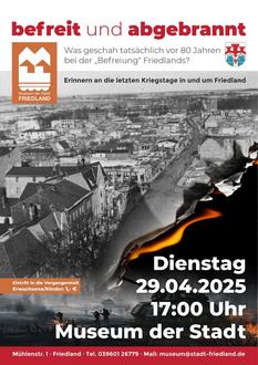 Am Dienstag, den 29. April 2025 um 17:00 Uhr lädt das Museum Friedland zu einer besonderen Veranstaltung ein. Unter dem Titel „befreit und abgebrannt“ wird die Endphase des Zweiten Weltkriegs in Friedland beleuchtet.