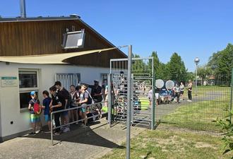 Das warten hat sich gelohnt. Merle war der erster Gast der Saison 2024 und konnte sich über eine Überraschung freuen. Viel Spaß beim Anbaden. Außerdem überraschte das Serviceteam alle Besucher am Eingang mit einem Glücksrad und bunten Preisen. Es wurde rege genutzt.