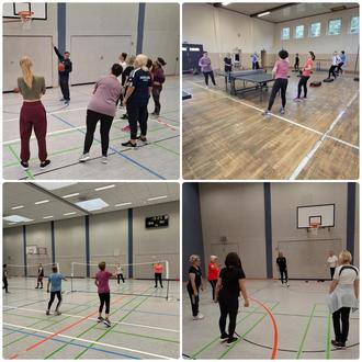 Bei unserem diesjährigen Frauenpower-Event konnten 70 Teilnehmerinnen in verschiedene Sportarten hineinschnuppern – von Badminton über Basketball bis hin zu Kursangeboten, Tischtennis und Prellball. Nach dem gemeinsamen Warm-up wurde jede Station in kleinen Gruppen aktiv erkundet. Den sportlichen Abschluss bildete eine entspannende Dehnungseinheit – und zur Belohnung gab’s Schnittchen & Sektchen. Danke an alle Powerfrauen fürs Mitmachen! Und ein großes Dankeschön an alle Trainerinnen und Trainer, sowie unseren fleißigen Helferinnen!