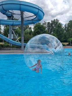 ab sofort ausleihbar: Wasserlaufbälle im Freibad Friedland