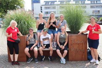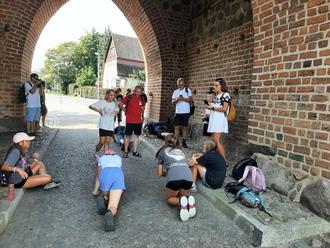 Bei strahlendem Sonnenschein wurden markante Punkte in Friedland aufgesucht, sportliche Einlagen absolviert und einige geschichtliche Fragen beantwortet. Eine kleine Zwischenstärkung gab es in unserem Museum – hier musste auch das Alter unserer Stadt herausgefunden werden – bevor es zum Abschluss den Aufstieg auf den Fangelturm gab. Dem Wetter entsprechend gab es anschließend ein Friedländer Eis von den Askaniern. Auf unserem Markt wurde dann von allen die Gelegenheit genutzt, um vor den im letzten Jahr zum offiziellen Friedlandtreffen eingeweihten Pflanzbänken jeder Stadt ein entsprechendes Gruppenfoto zu machen.