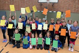 Am 17. Oktober fiel der Starschuss für alle Grundschüler eine für den Herbstcrosslauf. Die Laufstrecken waren in der Länge den Altersklassen entsprechend angepasst. Unter anderem ging eine Wegstrecke am Sportplatz Lindenweg vorbei bis hin zum Seebrückenvorplatz. Frau Hausmann als Organisatorin des Laufes konnte viele Helfer mobilisieren, so dass die Strecken gut abgesichert waren und der erfolgreiche Zieleinlauf in der Sporthalle für jeden Schüler mit einer Medaille belohnt wurde. Die drei Erstplatzierten einer jeder Jahrgansstufen erhielten zusätzlich noch eine Urkunde.