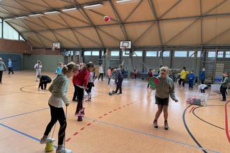 Jedoch vor dem Startschuss hielt der Schulförderverein noch eine Überraschung für alle Klassen bereit. In der Sporthalle wurden den Klassen je eine „sportlich“ gefüllte Spielekiste übergeben. Der Inhalt der Kisten, u.a. Bälle, Seile, Laufstelzen, Ballfänger fördern die aktive Bewegung in den Hofpausen an. Die Freude war groß und es konnte kaum abgewartet werden, den Inhalt der Kisten auszuprobieren. Hier ein großes Dankeschön an den Vorstand des Schulfördervereins!