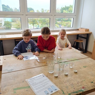 Im Werkraum fanden kleine Experimente statt. Eine Lerntheke nutzten die Kinder um ihr Wissen über Brandschutz zu festigen und Neues zu lernen.