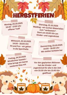 Die Herbstferien (20.10. - 24.10.2025) stehen vor der Tür und wir haben ein paar Aktionen geplant.