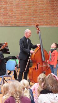 Unsere Kinder brachten sich aktiv ein und durften direkt zu den Orchesterleuten gehen und bestimmte Instrumente erraten und ansehen und sogar das Orchester dirigieren.