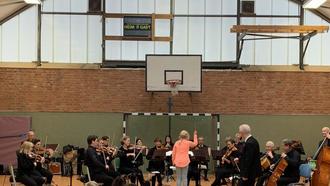 Der Dirigent des Orchesters führte durch das Programm. So erfuhren unsere Schülerinnen und Schüler: