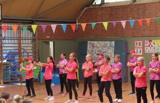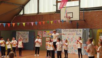 Mit viel Kreativität entstanden unter dem Wochenmotto „Unser bunter Ort der Talente“ außerdem bunte Bühnenbilder und fantasievolle Kostüme, die den großen Auftritt am Freitag perfekt abrundeten. Vor einem begeisterten Publikum präsentierten die Kinder ihre einstudierte Tanzshow- ein echtes Highlight, das allen noch lange in Erinnerung bleiben wird.